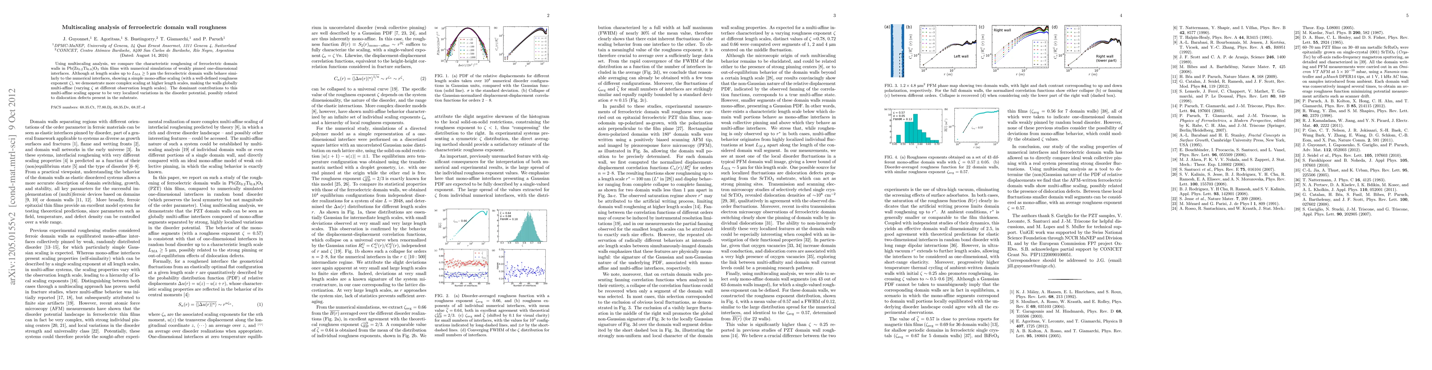 Researchers used multiscaling analysis to study ferroelectric domain walls in PZT thin films, finding that at small scales they behave like pinned interfaces but at larger scales exhibit complex, multi-affine scaling with varying roughness exponents.