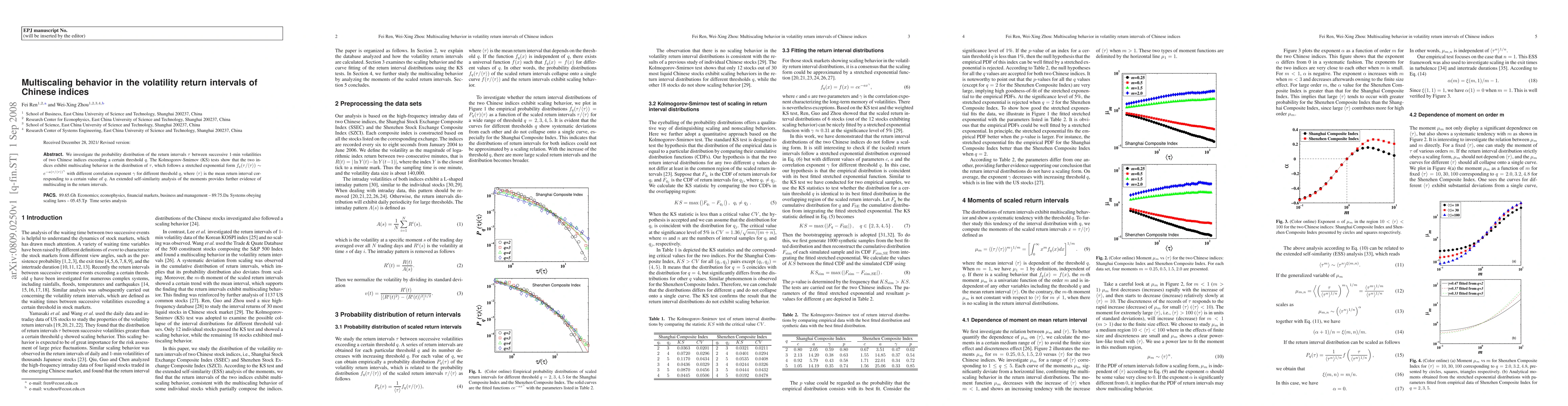 This study examines the return intervals between successive 1-min volatilities exceeding a threshold in two Chinese indices, revealing multiscaling behavior through a stretched exponential distribution. The findings further confirm multiscaling via an extended self-similarity analysis of the moments.