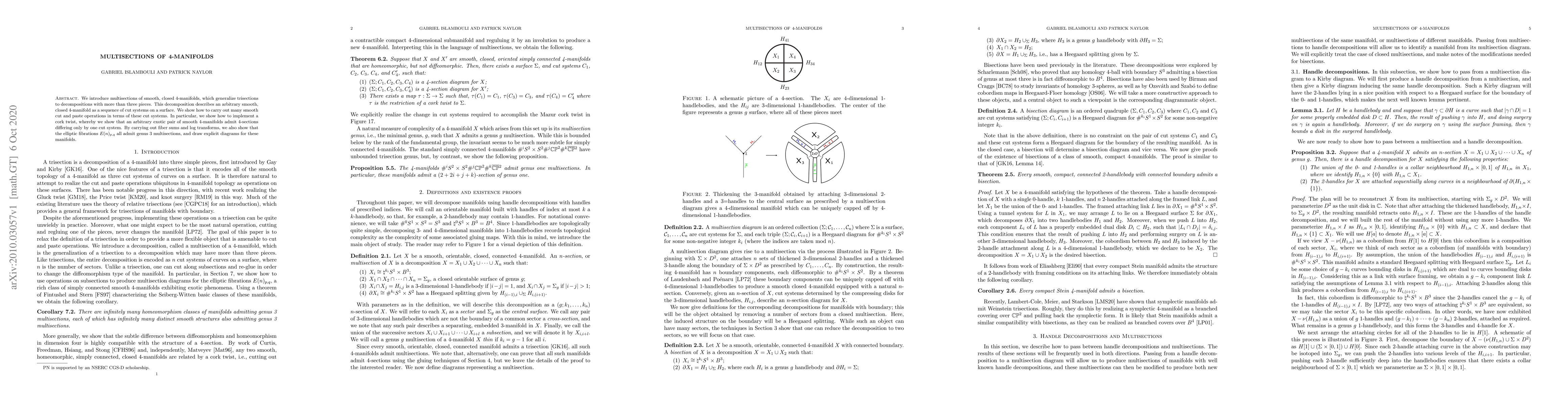 This paper introduces multisections of smooth, closed 4-manifolds, generalizing trisections to more than three pieces. It demonstrates smooth cut and paste operations using these multisections, including cork twists, and shows that elliptic fibrations $E(n)_{p,q}$ all admit genus 3 multisections.