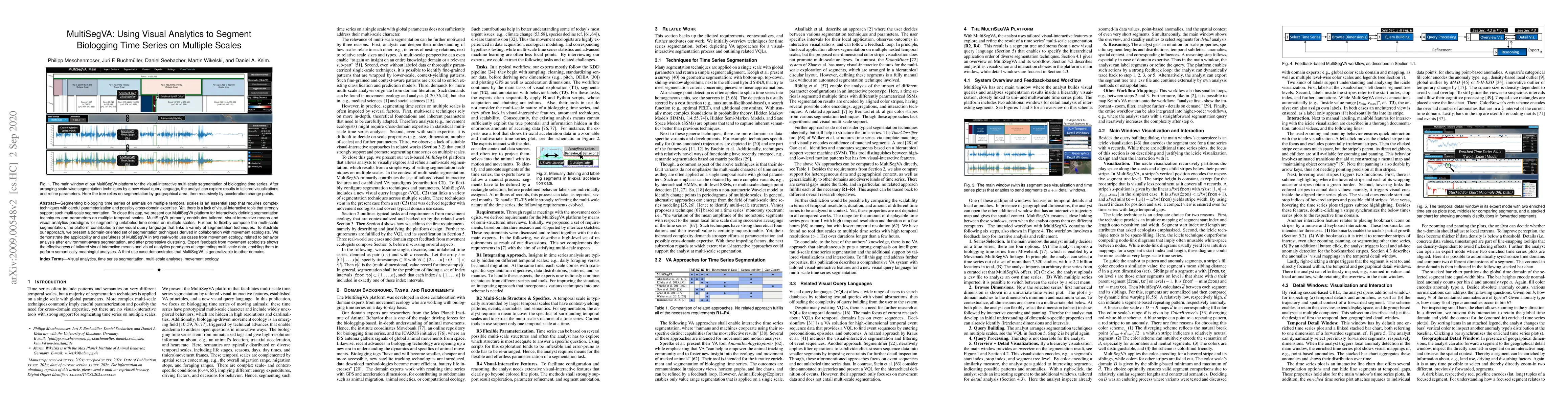 MultiSegVA is a visual analytics platform designed to facilitate the segmentation of biologging time series data across multiple temporal scales. It offers interactive tools and visual query language to support complex segmentation techniques, demonstrating effectiveness in movement ecology and generalizability to other domains.