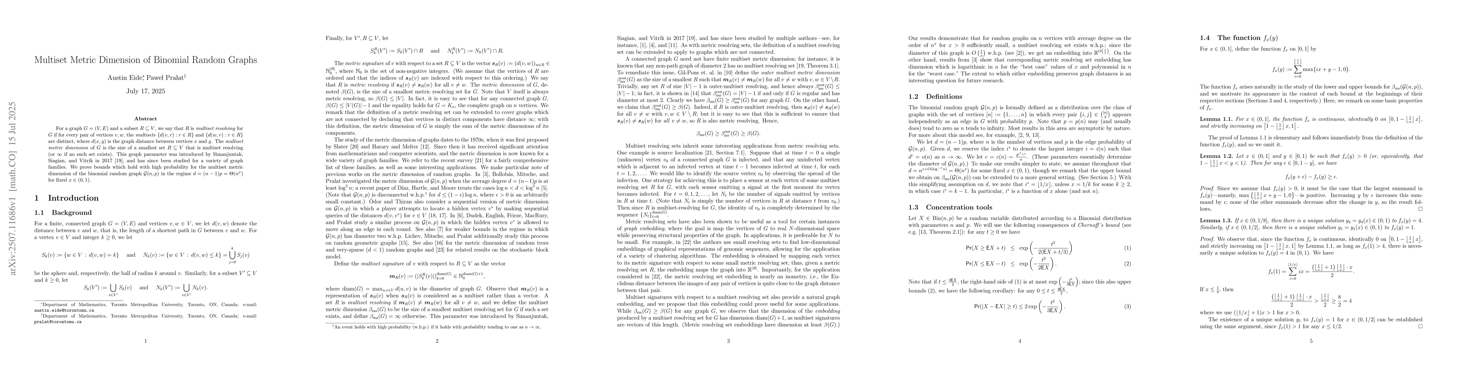For a graph $G = (V,E)$ and a subset $R \subseteq V$, we say that $R$ is \textit{multiset resolving} for $G$ if for every pair of vertices $v,w$, the \textit{multisets} $\{d(v,r): r \in R\}$ and $\{d(w,r):r \in R\}$ are distinct, where $d(x,y)$ is the graph distance between vertices $x$ and $y$. The \textit{multiset metric dimension} of $G$ is the size of a smallest set $R \subseteq V$ that is multiset resolving (or $\infty$ if no such set exists). This graph parameter was introduced by Simanjuntak, Siagian, and Vitr\'{i}k in 2017~\cite{simanjuntak2017multiset}, and has since been studied for a variety of graph families. We prove bounds which hold with high probability for the multiset metric dimension of the binomial random graph $G(n,p)$ in the regime $d = (n-1)p = \Theta(n^{x})$ for fixed $x \in (0,1)$.