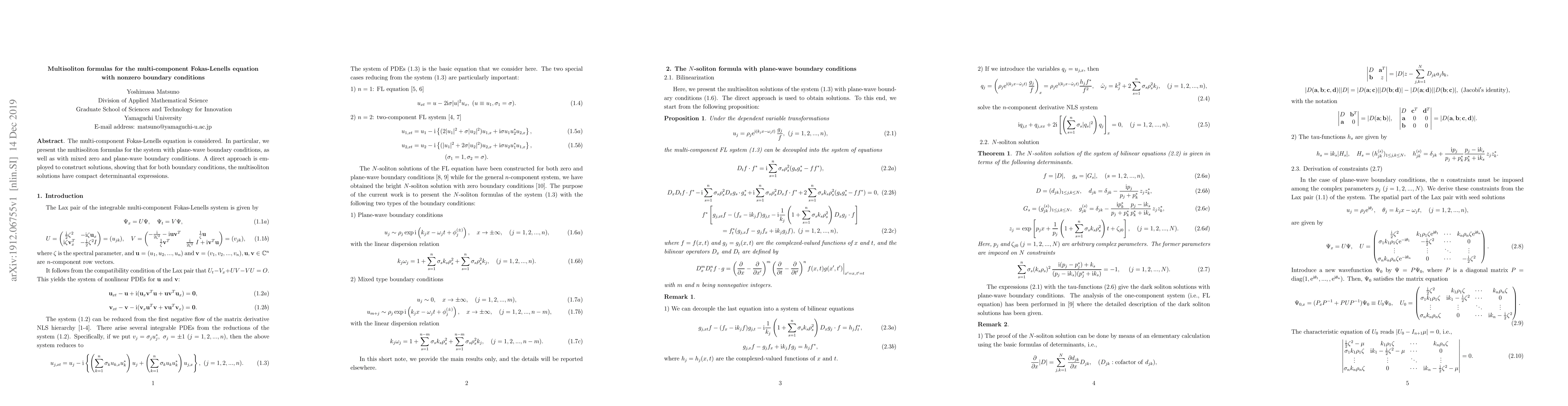 This paper presents multisoliton formulas for the multi-component Fokas-Lenells equation under plane-wave and mixed boundary conditions. The study employs a direct approach to derive compact determinantal expressions for the multisoliton solutions.