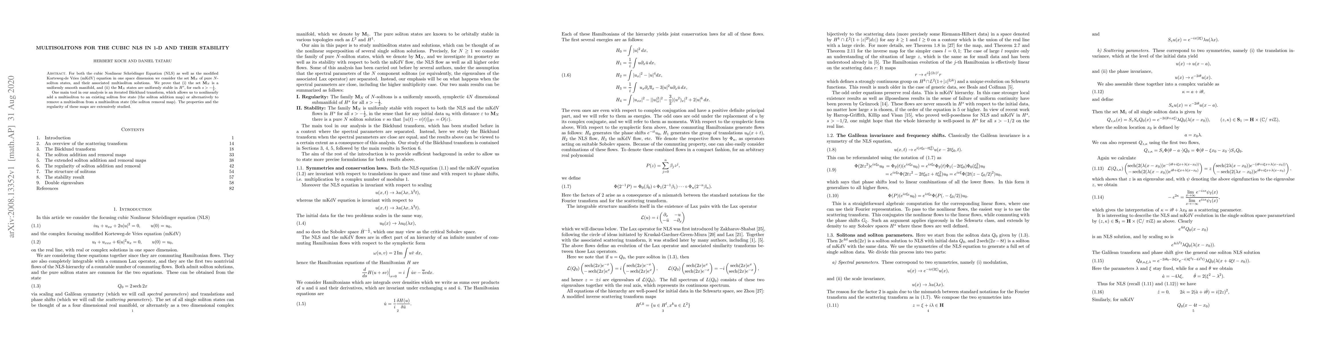 For both the cubic Nonlinear Schr\"odinger Equation (NLS) as well as the modified Korteweg-de Vries (mKdV) equation in one space dimension we consider the set ${\bf M}_N$ of pure $N$-soliton states, and their associated multisoliton solutions. We prove that (i) the set ${\bf M}_N$ is a uniformly smooth manifold, and (ii) the ${\bf M}_N$ states are uniformly stable in $H^s$, for each $s>-\frac12$. One main tool in our analysis is an iterated Backlund transform, which allows us to nonlinearly add a multisoliton to an existing soliton free state (the soliton addition map) or alternatively to remove a multisoliton from a multisoliton state (the soliton removal map). The properties and the regularity of these maps are extensively studied.
