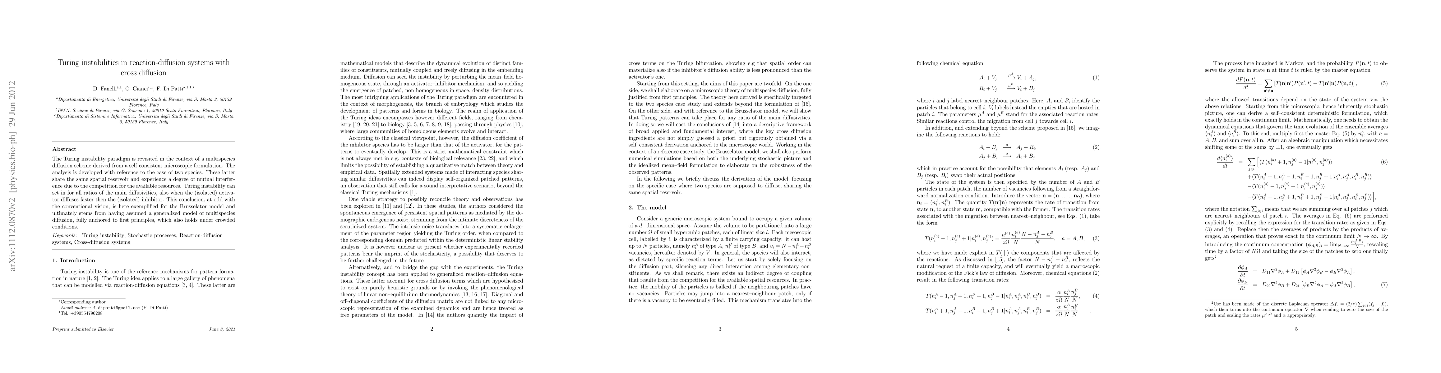 The Turing instability paradigm is revisited in the context of a multispecies diffusion scheme derived from a self-consistent microscopic formulation. The analysis is developed with reference to the case of two species. These latter share the same spatial reservoir and experience a degree of mutual interference due to the competition for the available resources. Turing instability can set in for all ratios of the main diffusivities, also when the (isolated) activator diffuses faster then the (isolated) inhibitor. This conclusion, at odd with the conventional vision, is here exemplified for the Brusselator model and ultimately stems from having assumed a generalized model of multispecies diffusion, fully anchored to first principles, which also holds under crowded conditions.