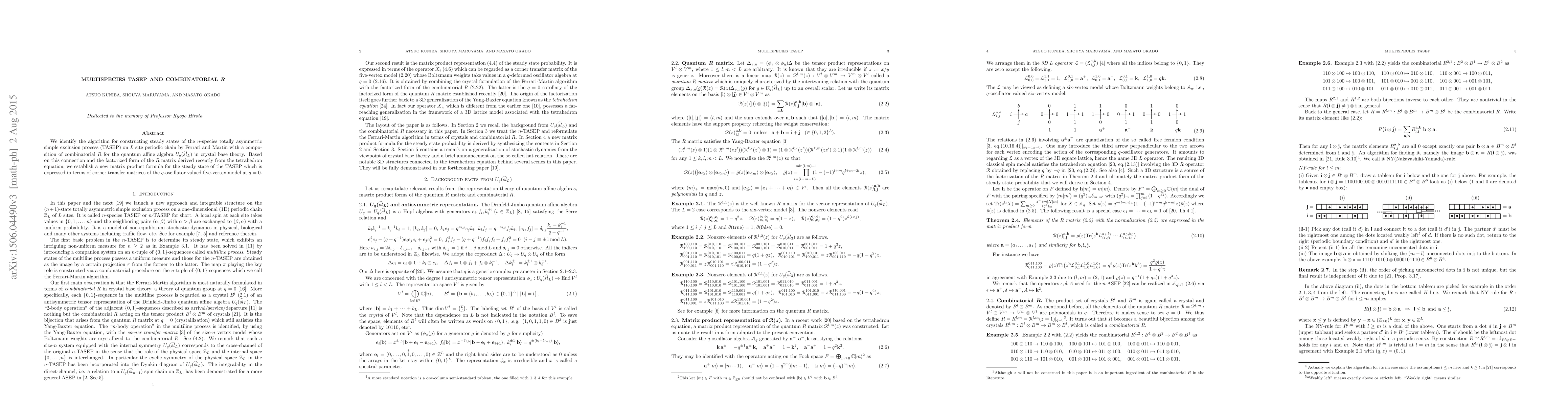 This paper connects the steady-state construction algorithm for the $n$-species totally asymmetric simple exclusion process (TASEP) to the combinatorial $R$ matrix from crystal base theory. It introduces a new matrix product formula for TASEP steady states using the factorized $R$ matrix and corner transfer matrices of the $q$-oscillator valued five-vertex model.