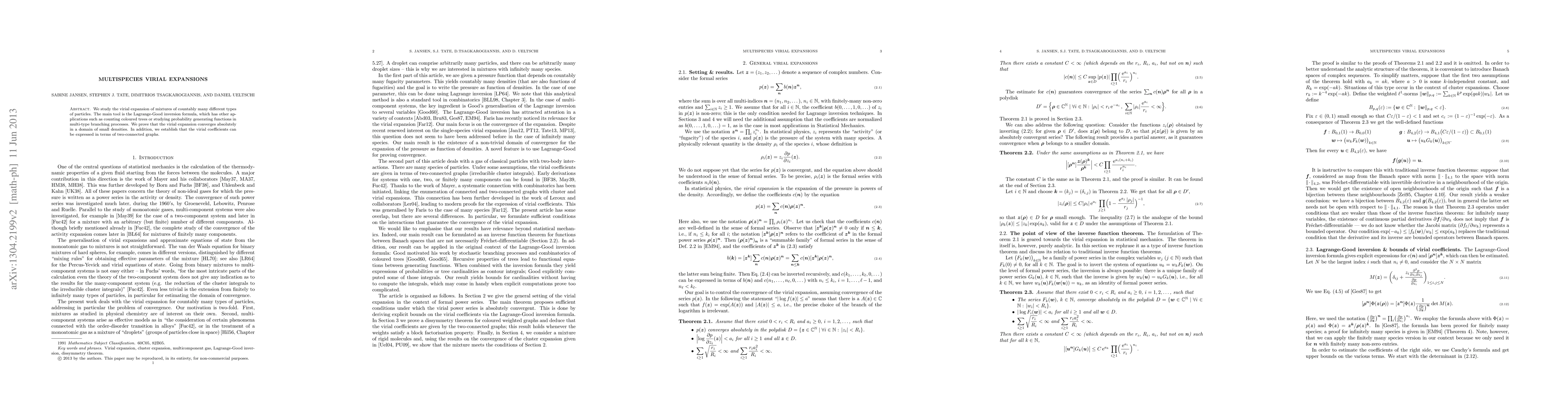 Researchers developed a method to analyze mixtures of particles using the Lagrange-Good inversion formula, proving that virial expansions converge absolutely in small densities and expressing coefficients in terms of two-connected graphs.