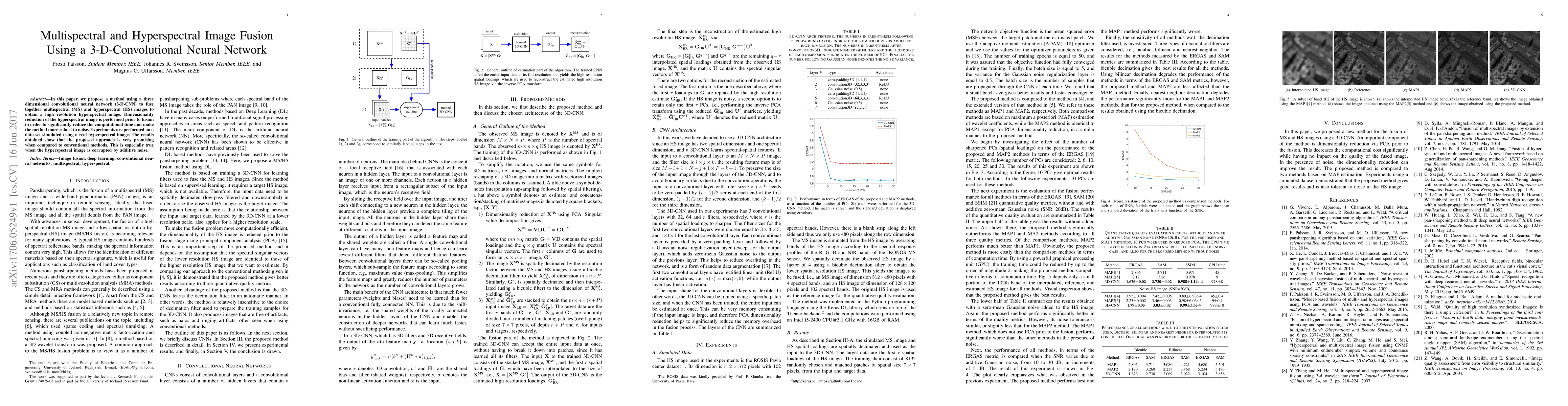 This paper proposes a 3-D convolutional neural network (3-D-CNN) method for fusing multispectral and hyperspectral images to produce high-resolution hyperspectral images. Pre-fusion dimensionality reduction of the hyperspectral image enhances computational efficiency and noise robustness, with promising results compared to conventional methods.