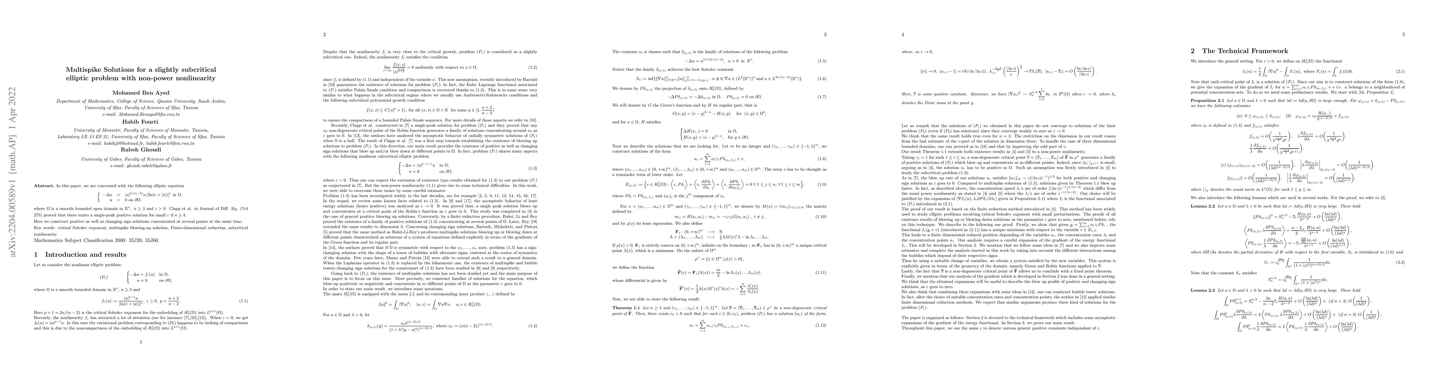This paper investigates the existence of multispike solutions for a slightly subcritical elliptic equation with non-power nonlinearity. It extends previous results by constructing both positive and changing sign solutions concentrated at multiple points.