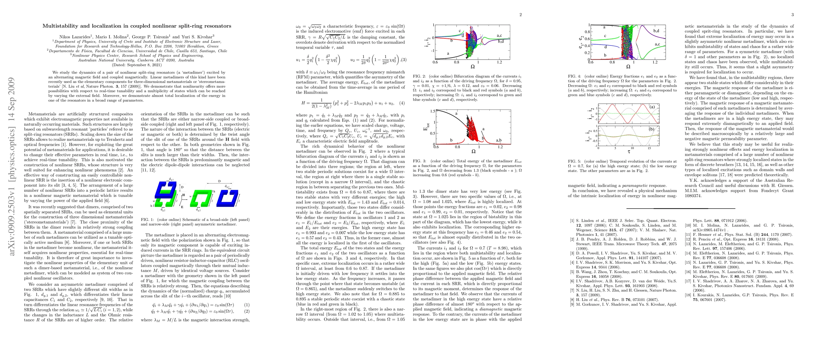 This paper investigates the dynamics of a pair of nonlinear split-ring resonators, termed a "metadimer," which exhibit multistability and energy localization when subjected to an alternating magnetic field. The study highlights enhanced tunability and multiple operational states enabled by the resonators' nonlinearity.