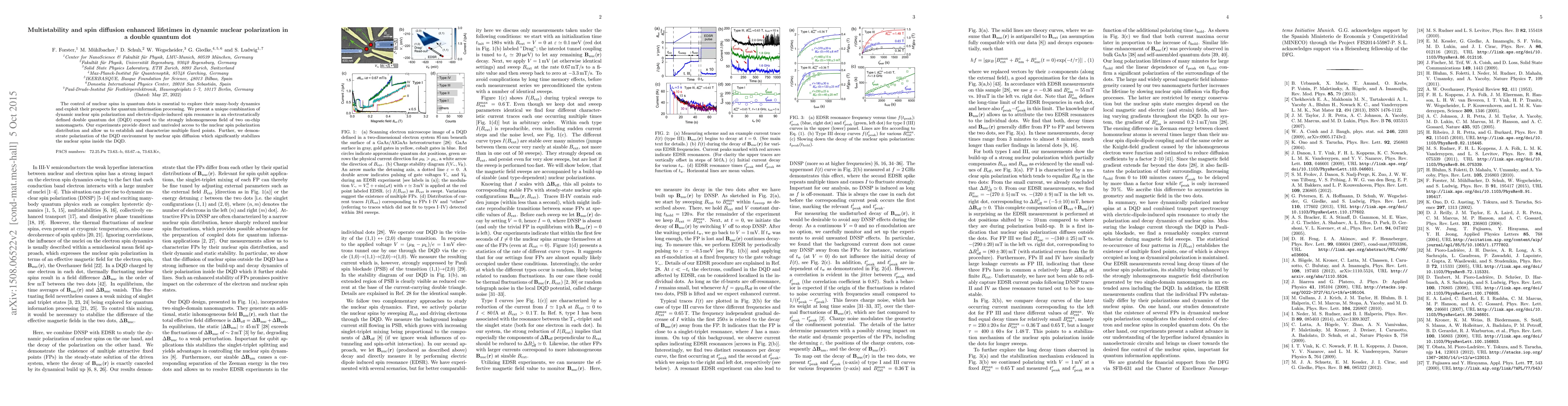 This research explores nuclear spin control in a double quantum dot using dynamic nuclear polarization and electric-dipole-induced spin resonance, revealing multistability and enhanced spin diffusion lifetimes through nanomagnet-induced inhomogeneities. The study establishes multiple fixed points and demonstrates stabilization via nuclear spin diffusion.