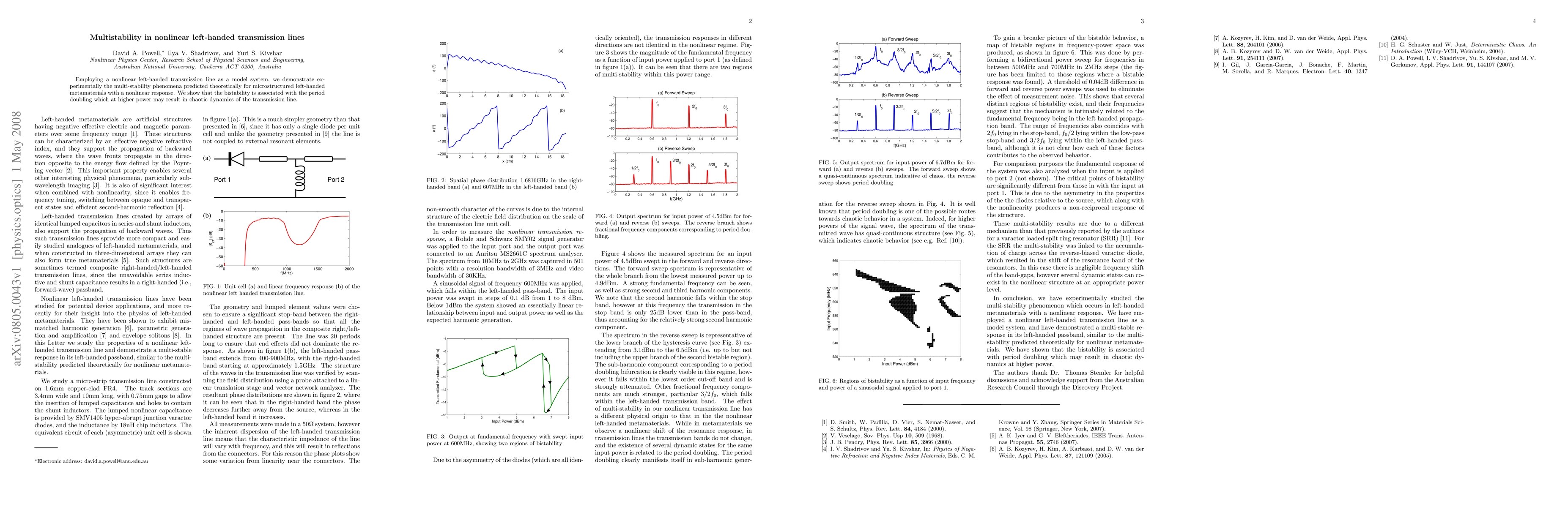 This research experimentally demonstrates multi-stability in nonlinear left-handed transmission lines, confirming theoretical predictions of period doubling and chaotic dynamics in microstructured left-handed metamaterials with nonlinear responses.