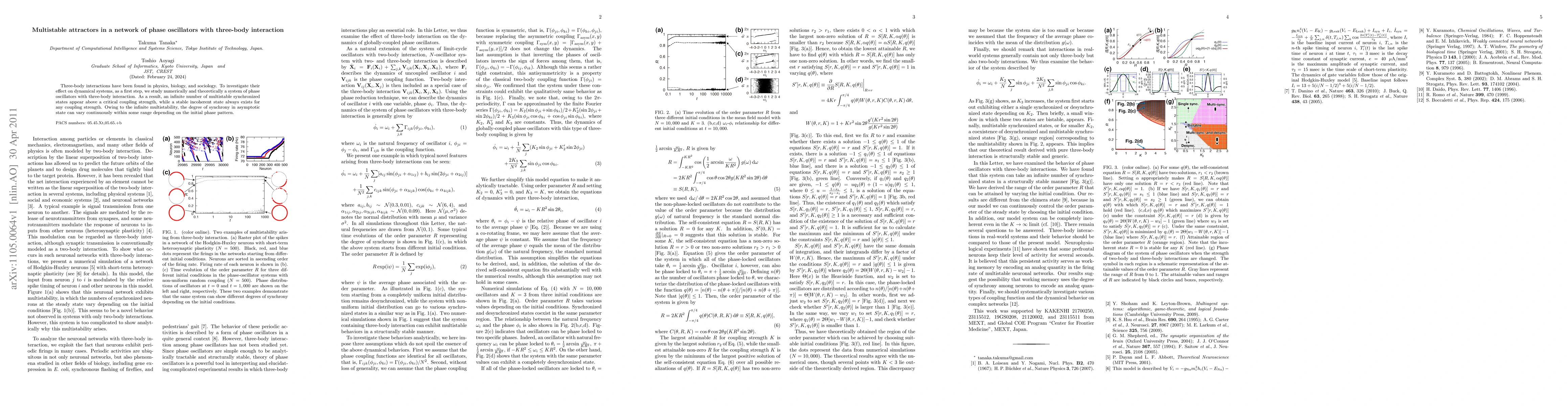 A network of phase oscillators with three-body interaction exhibits an infinite number of multistable synchronized states above a critical coupling strength, while a stable incoherent state exists for any coupling strength.