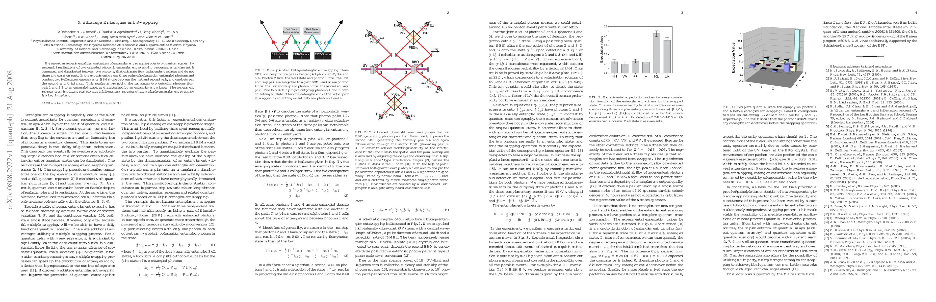 This paper demonstrates a two-stage entanglement swapping process using polarization entangled photons, successfully generating entanglement between two photons from independent sources. The experiment involves two Bell-state measurements and serves as a significant step towards building a quantum repeater.