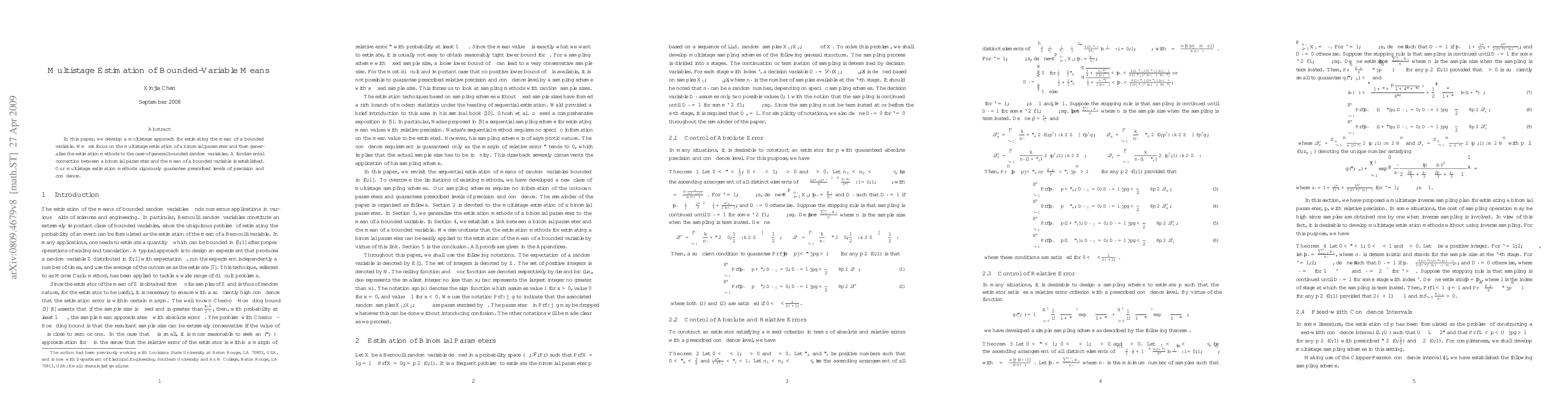 This paper introduces a multistage estimation technique for determining the mean of bounded variables, starting with binomial parameters and extending to general bounded random variables. The method ensures precise and confident estimates by establishing a connection between binomial parameters and bounded variable means.