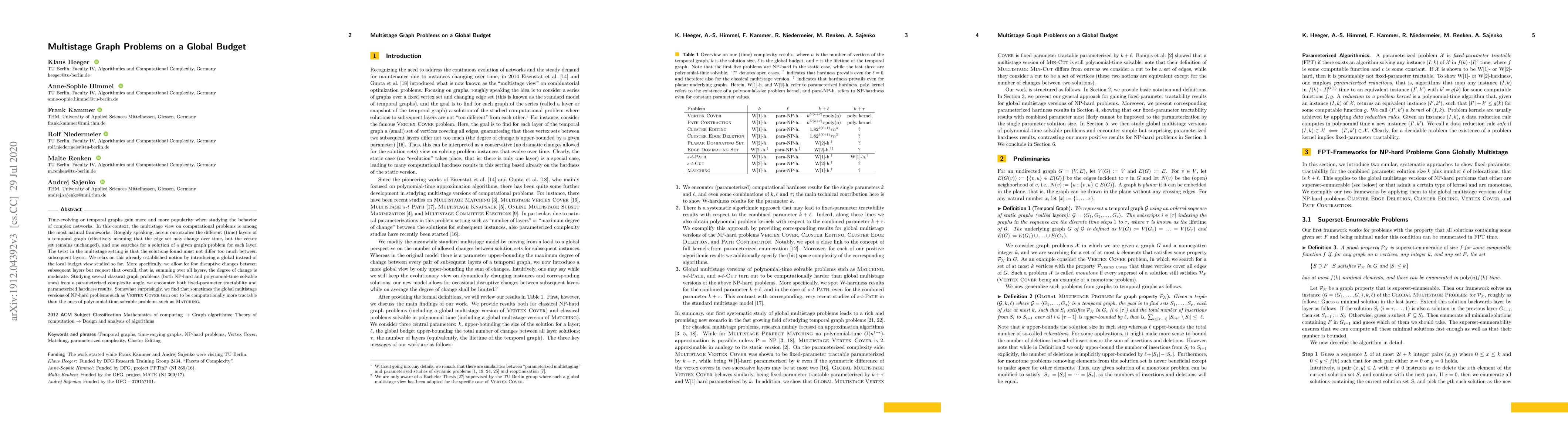 This paper explores multistage graph problems on temporal graphs with a global budget constraint, allowing for moderate overall changes across time layers. It finds that global multistage versions of NP-hard problems like Vertex Cover can sometimes be more tractable than those of polynomial-time solvable problems like Matching.