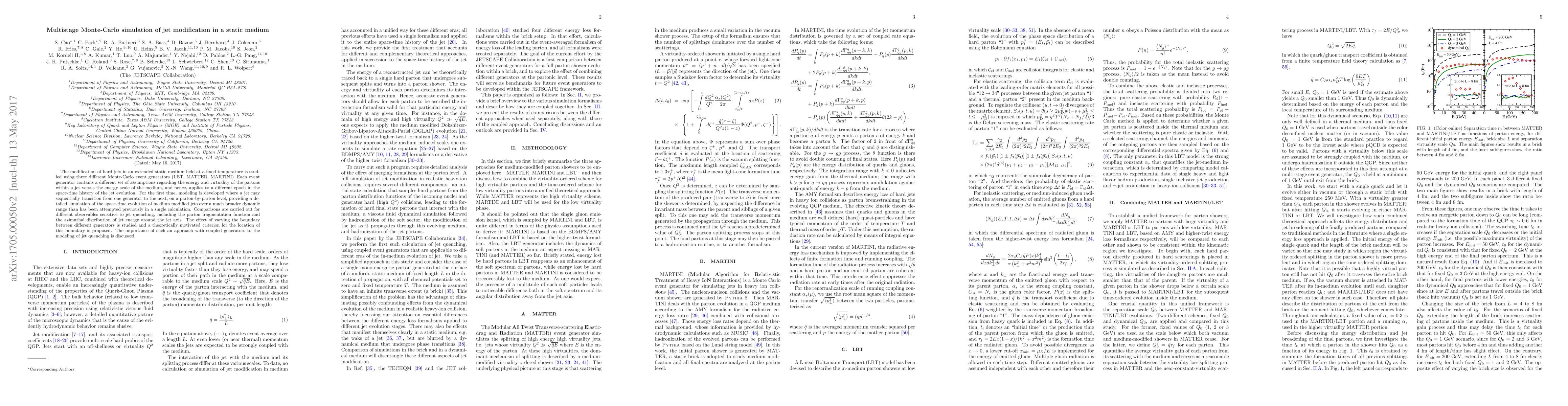 This paper develops a multistage Monte-Carlo simulation to study jet modification in a static medium, employing three event generators that model different stages of jet evolution. The study proposes a novel method for transitioning jets between generators, providing a comprehensive simulation of jet quenching over a broader dynamic range.