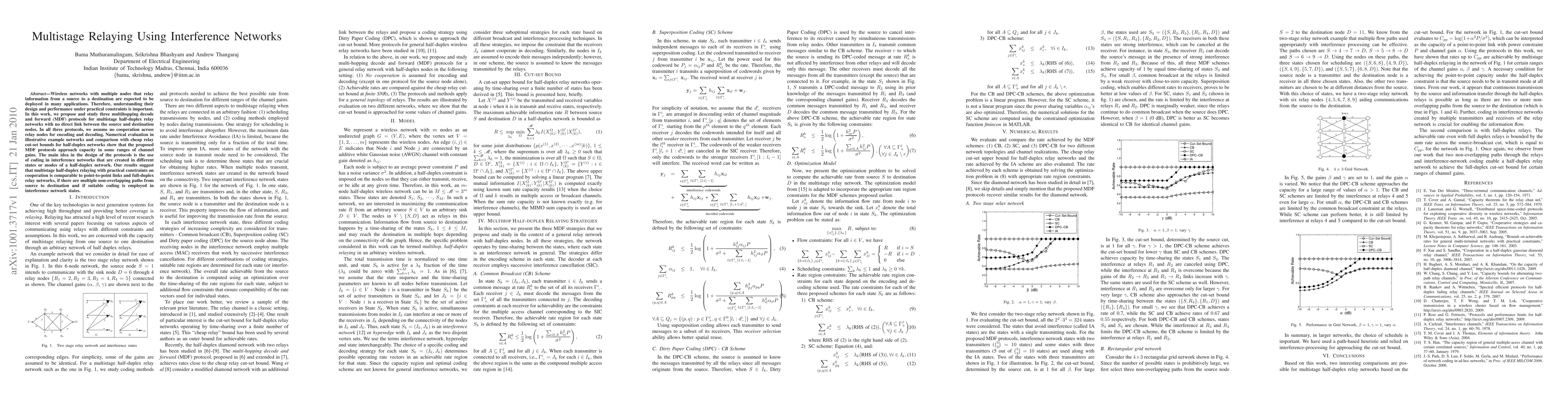 Wireless networks with multiple nodes that relay information from a source to a destination are expected to be deployed in many applications. Therefore, understanding their design and performance under practical constraints is important. In this work, we propose and study three multihopping decode and forward (MDF) protocols for multistage half-duplex relay networks with no direct link between the source and destination nodes. In all three protocols, we assume no cooperation across relay nodes for encoding and decoding. Numerical evaluation in illustrative example networks and comparison with cheap relay cut-set bounds for half-duplex networks show that the proposed MDF protocols approach capacity in some ranges of channel gains. The main idea in the design of the protocols is the use of coding in interference networks that are created in different states or modes of a half-duplex network. Our results suggest that multistage half-duplex relaying with practical constraints on cooperation is comparable to point-to-point links and full-duplex relay networks, if there are multiple non-overlapping paths from source to destination and if suitable coding is employed in interference network states.