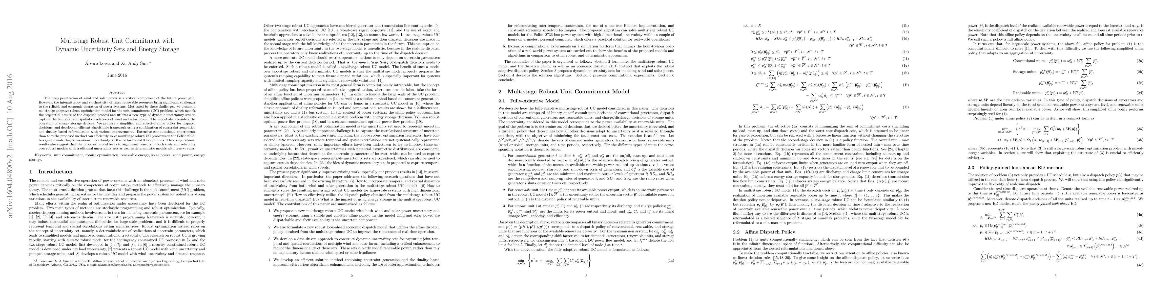 This paper proposes a multistage robust optimization model for unit commitment that addresses the intermittency of wind and solar power using dynamic uncertainty sets and energy storage. The model efficiently solves the problem on a large Polish power grid, demonstrating significant cost and reliability benefits compared to traditional models.