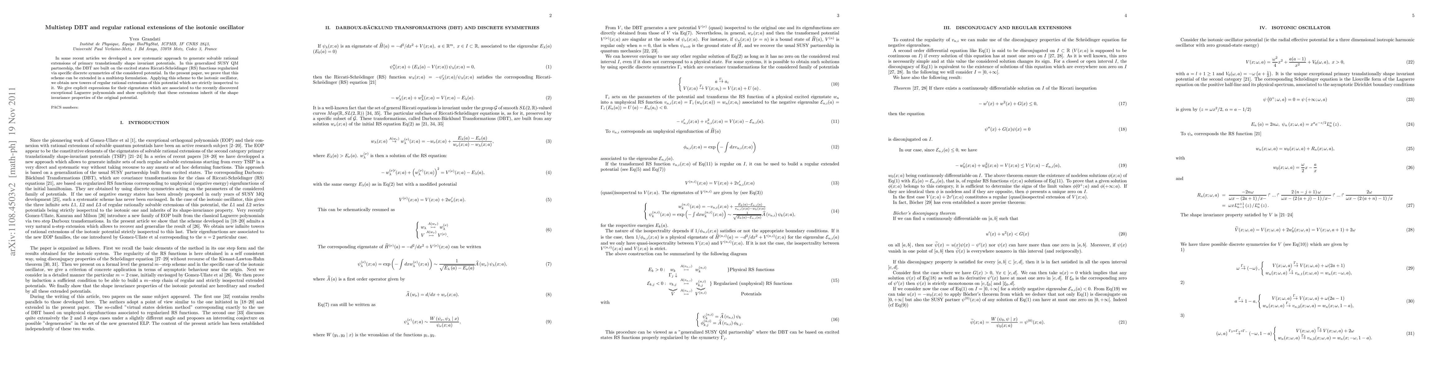 In some recent articles we developed a new systematic approach to generate solvable rational extensions of primary translationally shape invariant potentials. In this generalized SUSY QM partnership, the DBT are built on the excited states Riccati-Schr\"odinger (RS) functions regularized via specific discrete symmetries of the considered potential. In the present paper, we prove that this scheme can be extended in a multistep formulation. Applying this scheme to the isotonic oscillator, we obtain new towers of regular rational extensions of this potential which are strictly isospectral to it. We give explicit expressions for their eigenstates which are associated to the recently discovered exceptional Laguerre polynomials and show explicitely that these extensions inherit of the shape invariance properties of the original potential.