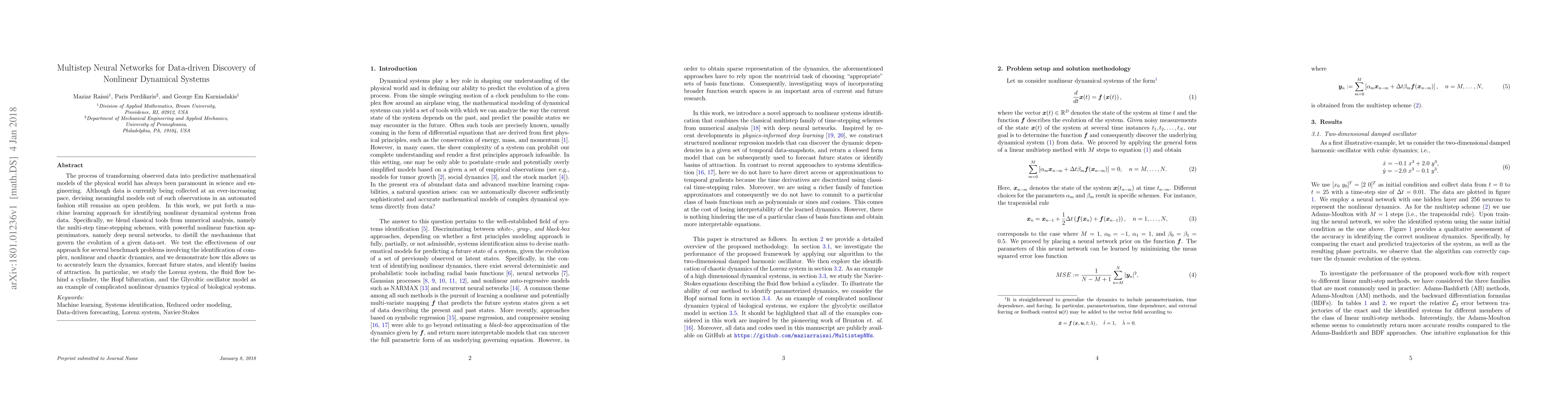 The process of transforming observed data into predictive mathematical models of the physical world has always been paramount in science and engineering. Although data is currently being collected at an ever-increasing pace, devising meaningful models out of such observations in an automated fashion still remains an open problem. In this work, we put forth a machine learning approach for identifying nonlinear dynamical systems from data. Specifically, we blend classical tools from numerical analysis, namely the multi-step time-stepping schemes, with powerful nonlinear function approximators, namely deep neural networks, to distill the mechanisms that govern the evolution of a given data-set. We test the effectiveness of our approach for several benchmark problems involving the identification of complex, nonlinear and chaotic dynamics, and we demonstrate how this allows us to accurately learn the dynamics, forecast future states, and identify basins of attraction. In particular, we study the Lorenz system, the fluid flow behind a cylinder, the Hopf bifurcation, and the Glycoltic oscillator model as an example of complicated nonlinear dynamics typical of biological systems.