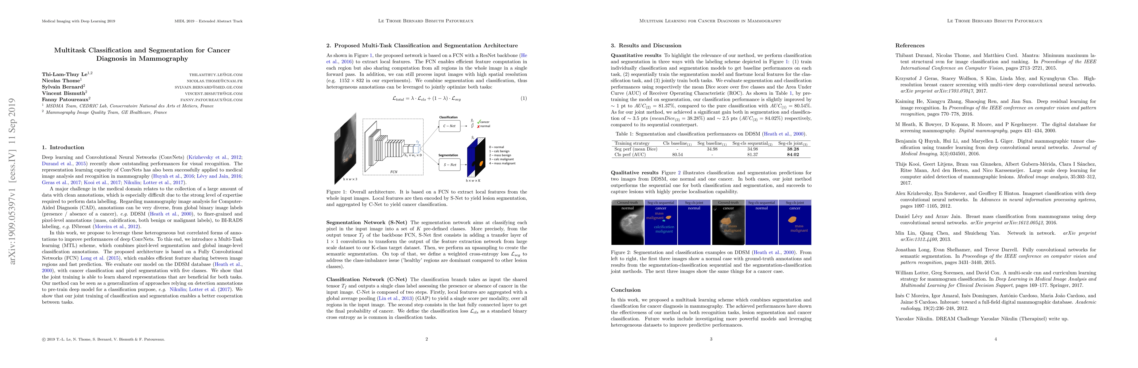 This paper proposes a multi-task learning scheme combining segmentation and classification for cancer diagnosis in mammography, utilizing both image-level and pixel-level annotations to improve predictive performance and reduce annotation costs. Experiments on the DDSM dataset demonstrate the effectiveness of the approach.
