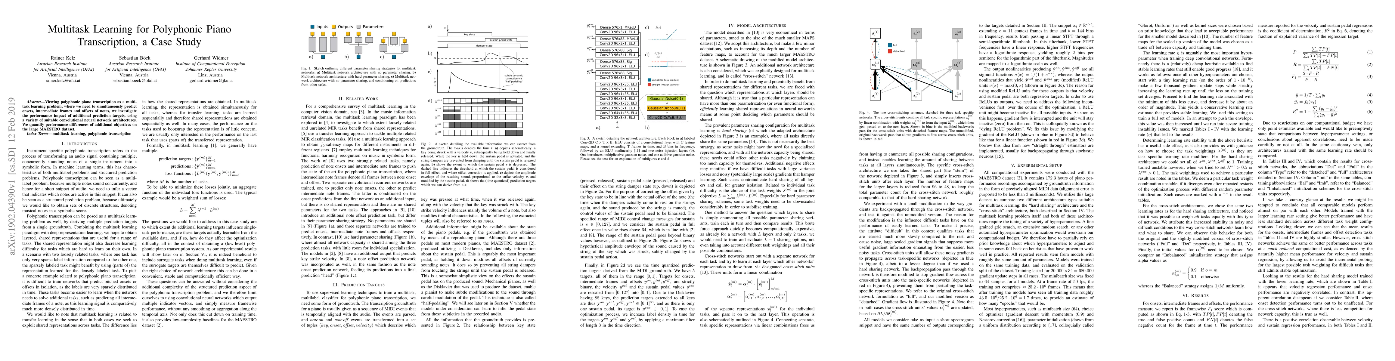 Viewing polyphonic piano transcription as a multitask learning problem, where we need to simultaneously predict onsets, intermediate frames and offsets of notes, we investigate the performance impact of additional prediction targets, using a variety of suitable convolutional neural network architectures. We quantify performance differences of additional objectives on the large MAESTRO dataset.