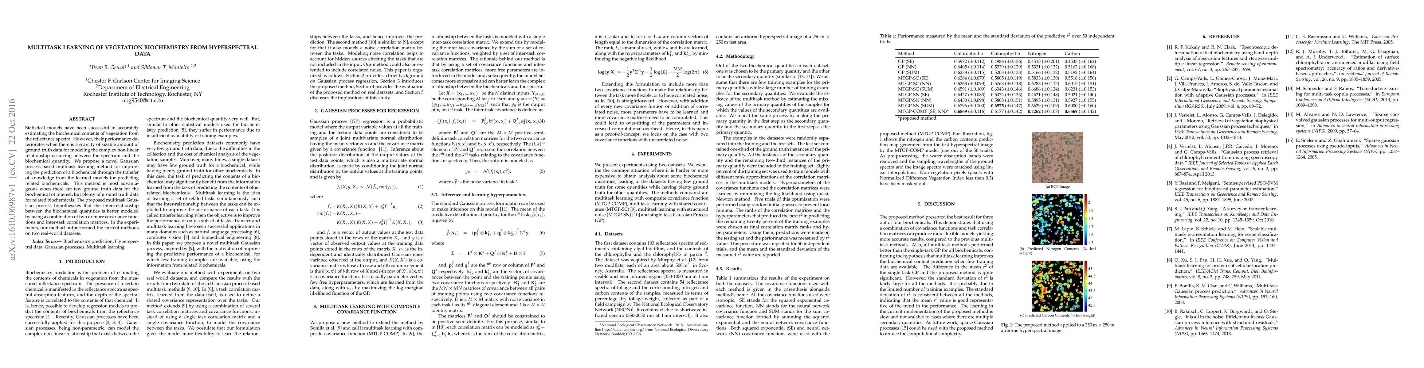 A novel Gaussian process-based multitask learning method improves prediction of biochemicals from hyperspectral data, especially when ground truth data is scarce for the target biochemical.