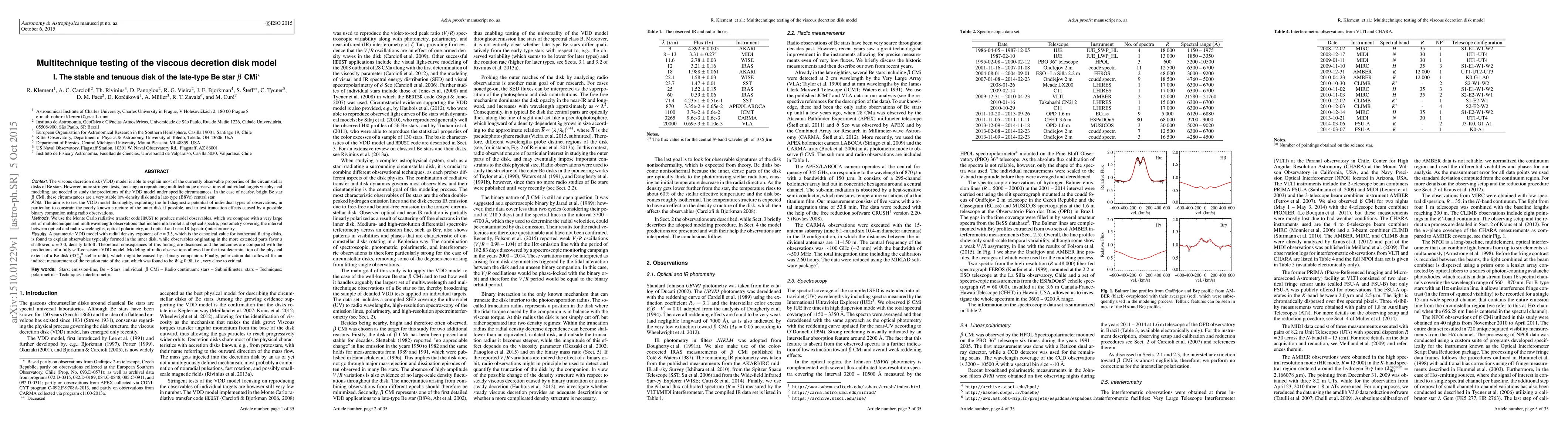 Researchers tested the viscous decretion disk model on the Be star $eta$ CMi using multitechnique observations, finding a stable low-density disk with a density falloff of $n = 3.0$, and constraining the disk's physical extent to be 35 stellar radii.