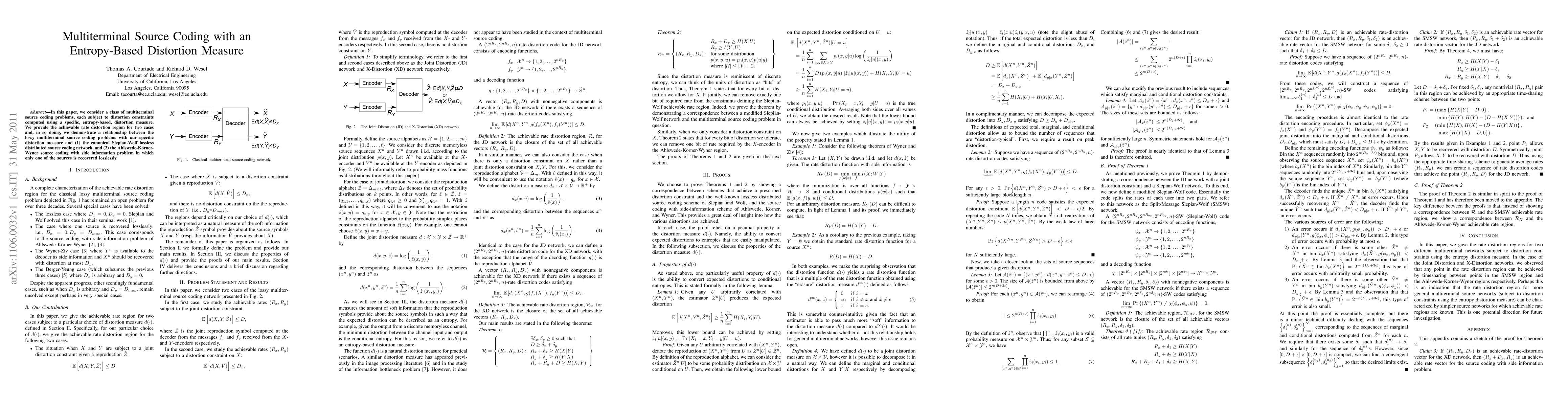 In this paper, we consider a class of multiterminal source coding problems, each subject to distortion constraints computed using a specific, entropy-based, distortion measure. We provide the achievable rate distortion region for two cases and, in so doing, we demonstrate a relationship between the lossy multiterminal source coding problems with our specific distortion measure and (1) the canonical Slepian-Wolf lossless distributed source coding network, and (2) the Ahlswede-K\"{o}rner-Wyner source coding with side information problem in which only one of the sources is recovered losslessly.