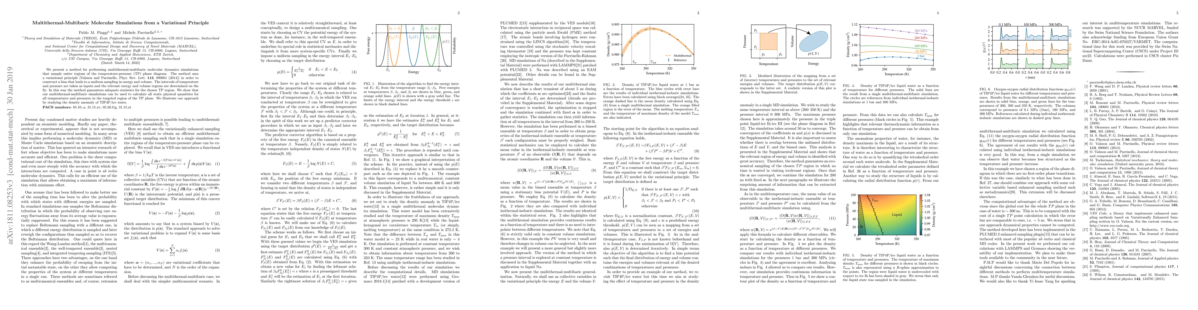 We present a method for performing multithermal-multibaric molecular dynamics simulations that sample entire regions of the temperature-pressure (TP) phase diagram. The method uses a variational principle [Valsson and Parrinello, Phys. Rev. Lett. 113, 090601 (2014)] in order to construct a bias that leads to a uniform sampling in energy and volume. The intervals of temperature and pressure are taken as inputs and the relevant energy and volume regions are determined on the fly. In this way the method guarantees adequate statistics for the chosen TP region. We show that our multithermal-multibaric simulations can be used to calculate all static physical quantities for all temperatures and pressures in the targeted region of the TP plane. We illustrate our approach by studying the density anomaly of TIP4P/Ice water.