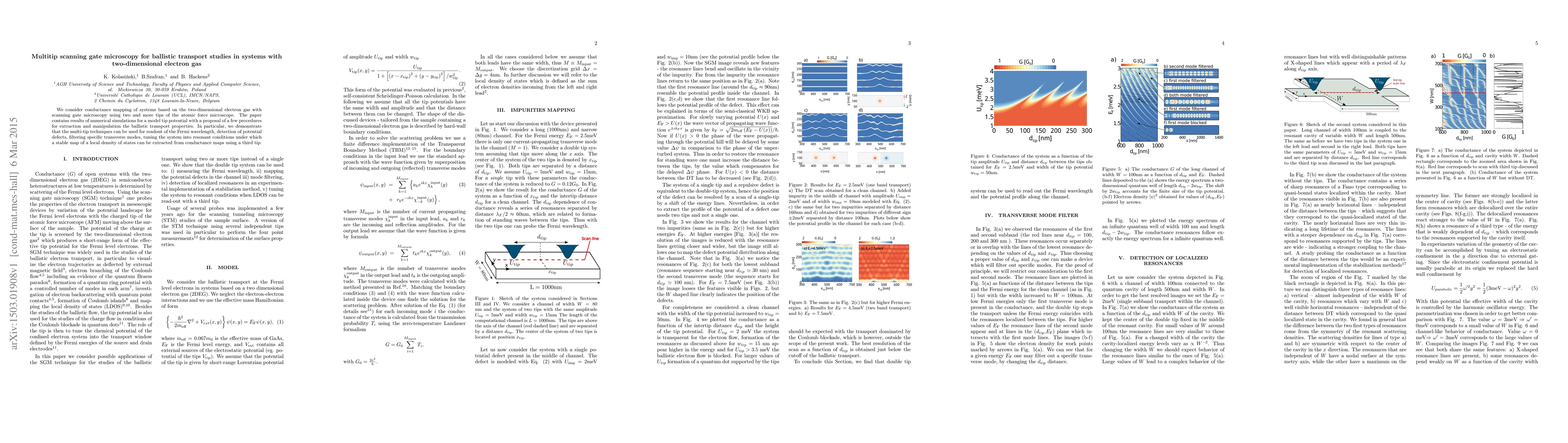 This research uses multi-tip scanning gate microscopy to study ballistic transport in systems with a two-dimensional electron gas. It proposes methods to extract and manipulate transport properties, demonstrating applications such as measuring Fermi wavelength, detecting potential defects, and creating resonant conditions for mapping local density of states.