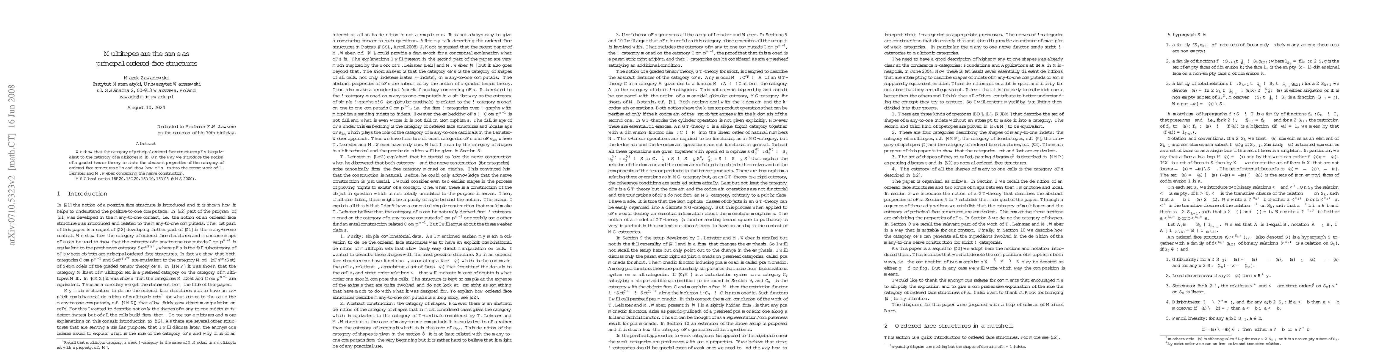 This paper demonstrates an equivalence between the category of principal ordered face structures and the category of multitopes, introducing the concept of graded tensor theory to describe the properties of ordered face structures and connecting it to Leinster and Weber's nerve construction.