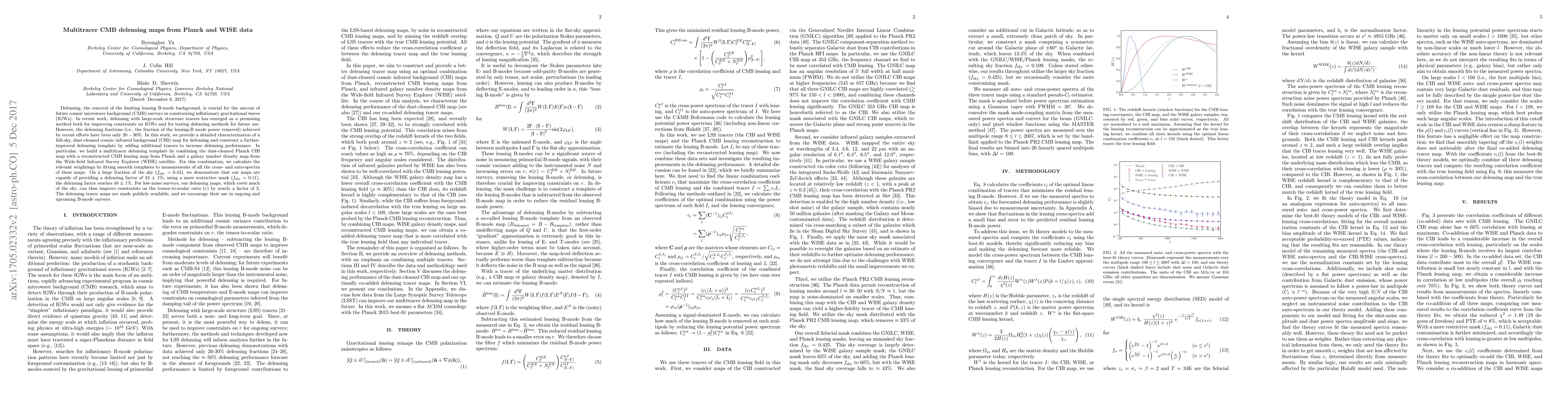 The research employs multitracer delensing techniques, combining an internal CMB lensing reconstruction with external large-scale structure (LSS) tracers: a dust-cleaned Cosmic Infrared Background (CIB) map from Planck and a galaxy number density map from the Wide-field Infrared Survey Explorer (WISE) satellite. The study also provides a detailed characterization of a component-separated CIB map, which dominates the overall delensing performance.