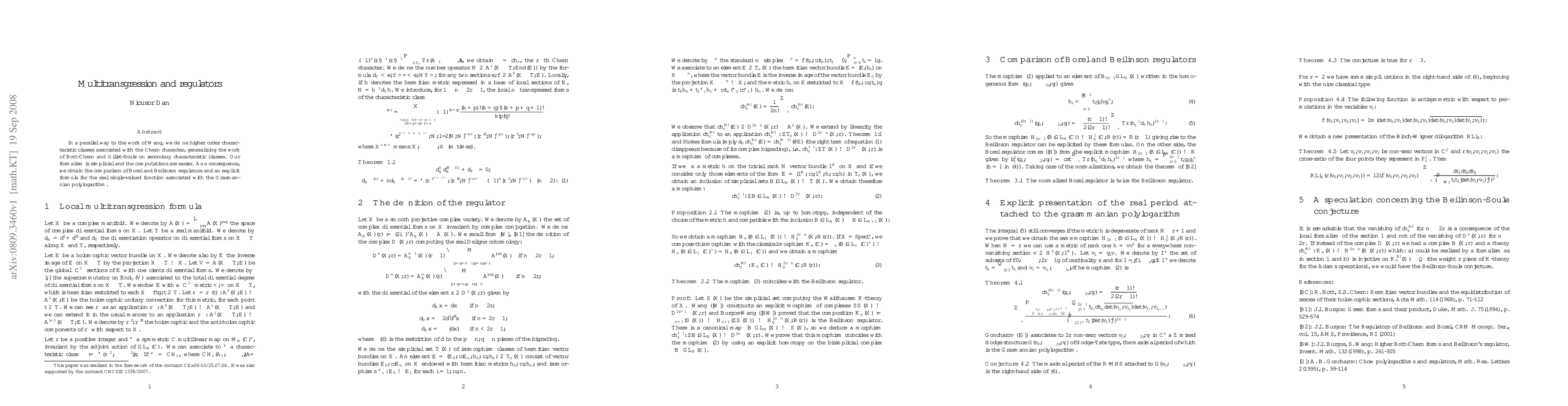 In a parallel way to the work of Wang, we define higher order characteristic classes associated with the Chern character, generalizing the work of Bott-Chern and Gillet-Soul\'e on secondary characteristic classes. Our formalism is simplicial and the computations are easier. As a consequence, we obtain the comparison of Borel and Beilinson regulators and an explicit formula for the real single-valued function associated with the Grasmannian polylogarithm.