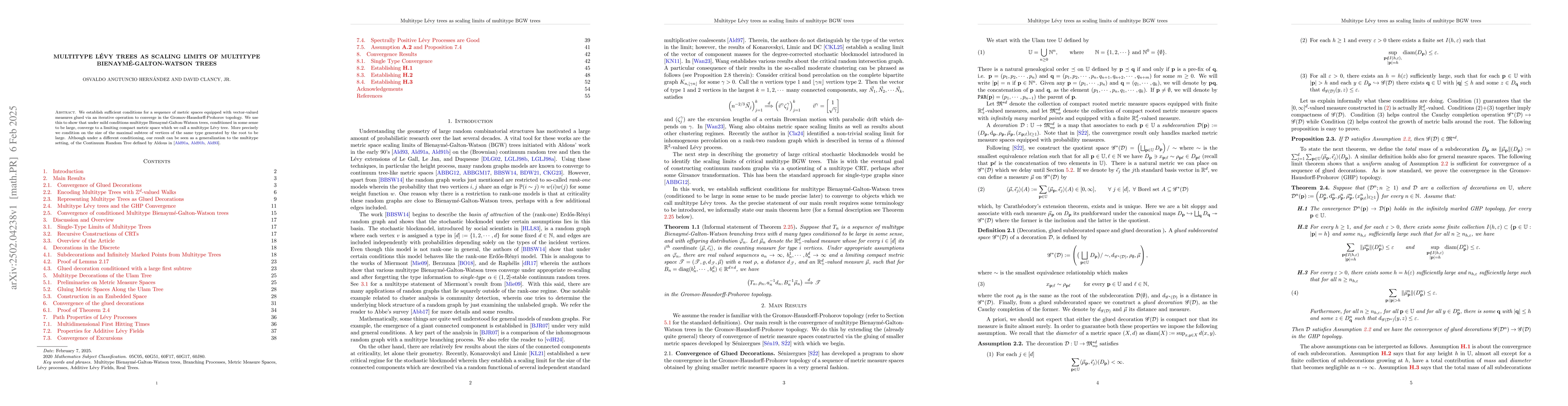 The research establishes sufficient conditions for a sequence of metric spaces, equipped with vector-valued measures glued via an iterative operation, to converge in the Gromov-Hausdorff-Prohorov topology. This convergence is utilized to show that multitype Bienaymé-Galton-Watson trees, conditioned on the size of the maximal subtree of vertices of the same type, converge to a limiting compact metric space termed a multitype Lévy tree.