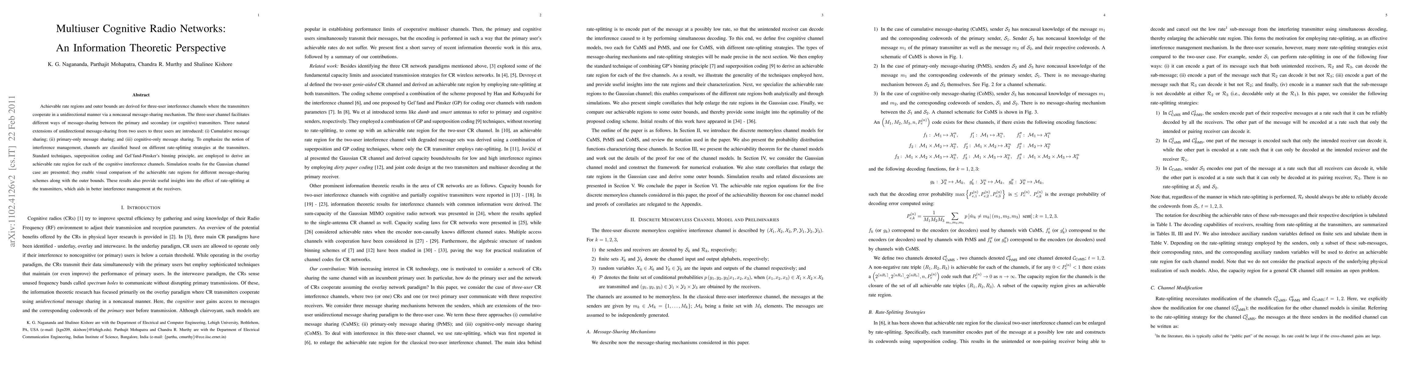This paper explores achievable rate regions for three-user cognitive radio networks using information-theoretic techniques, focusing on different message-sharing strategies. It introduces three extensions of message-sharing and employs superposition coding and binning principles to derive rate regions, providing insights into interference management through simulation results.