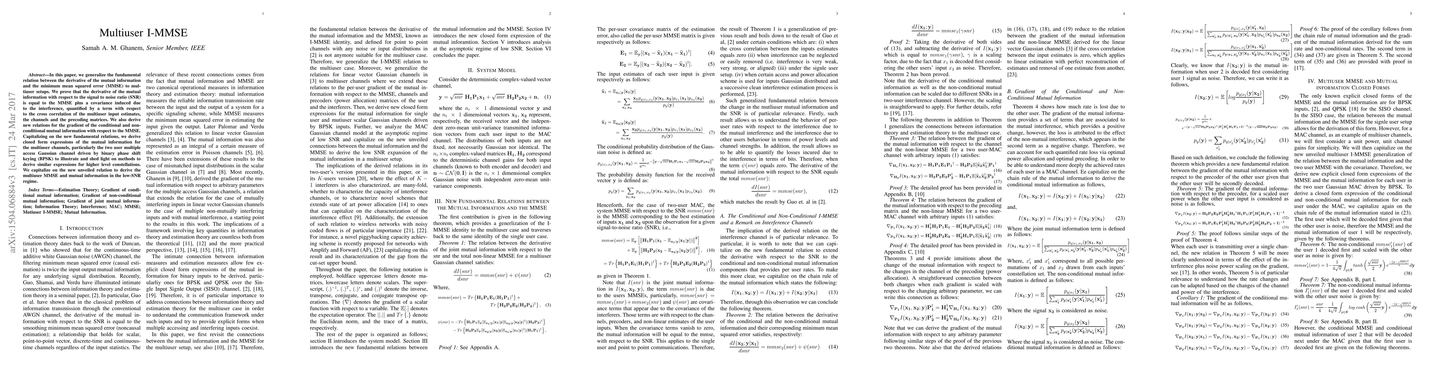 Researchers develop a new understanding of how mutual information relates to mean squared error in multiuser setups, leading to closed-form expressions for mutual information and minimum mean squared error in low-SNR regimes.