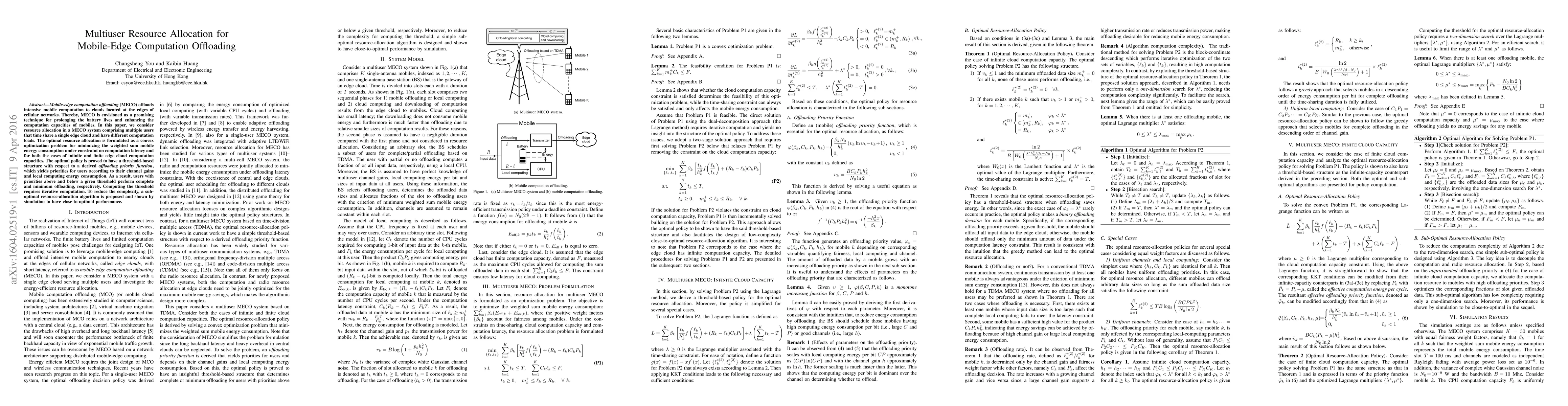 This paper proposes an optimal convex optimization approach for resource allocation in a multiuser mobile-edge computation offloading system, aiming to minimize energy consumption while respecting latency constraints. A sub-optimal algorithm is also introduced to reduce computational complexity while maintaining near-optimal performance.