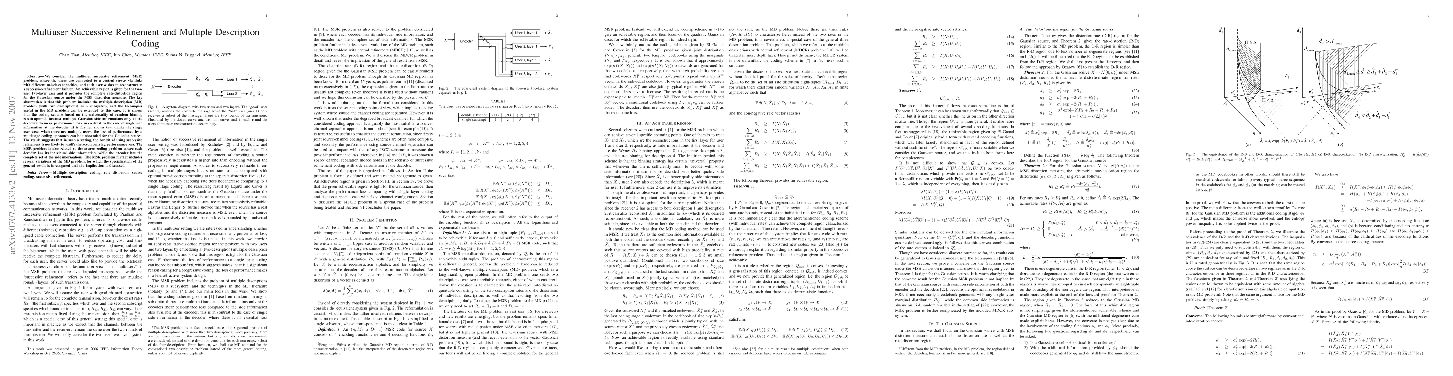 This paper explores the multiuser successive refinement (MSR) problem, providing an achievable rate-distortion region for the Gaussian source in a two-user, two-layer setup. It reveals that while MSR encompasses the multiple description coding problem, the coding scheme based on random binning is sub-optimal due to performance loss from multiple Gaussian side informations at decoders.
