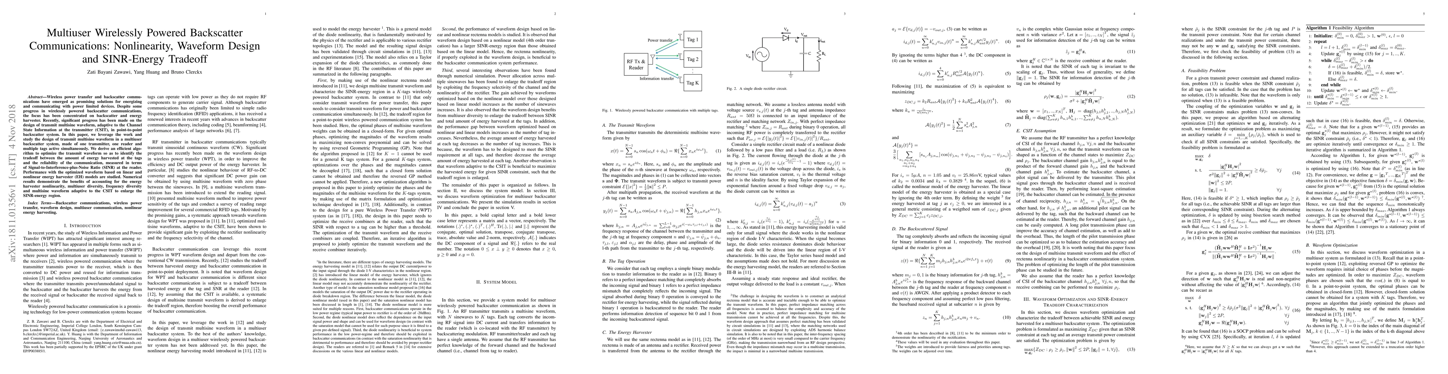 This paper explores the design of transmit multisine waveforms for multiuser wirelessly powered backscatter communications, optimizing the tradeoff between energy harvesting efficiency and communication reliability. The study derives an efficient algorithm to maximize Signal-to-Interference-plus-Noise Ratio (SINR) while considering both linear and nonlinear energy harvester models.