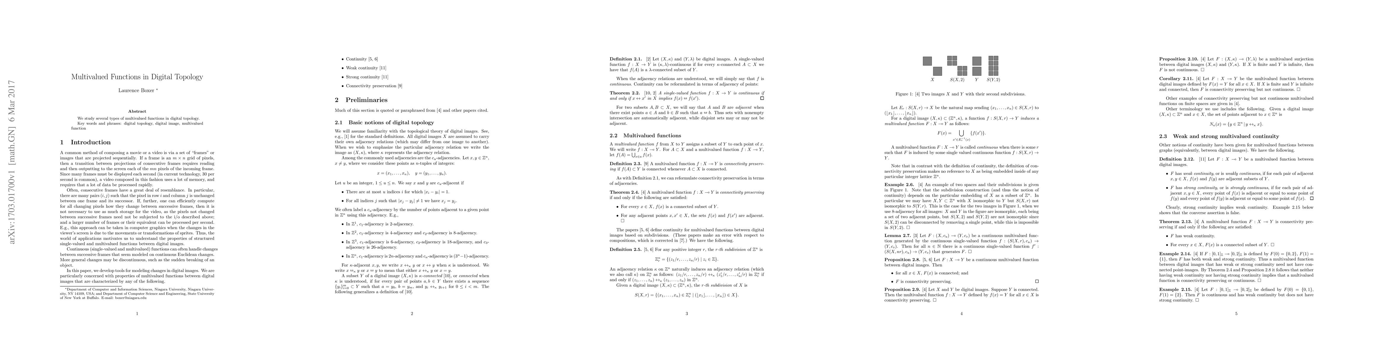 Summary: This paper investigates various multivalued functions within the framework of digital topology, aiming to understand their properties and applications in digital image analysis.
