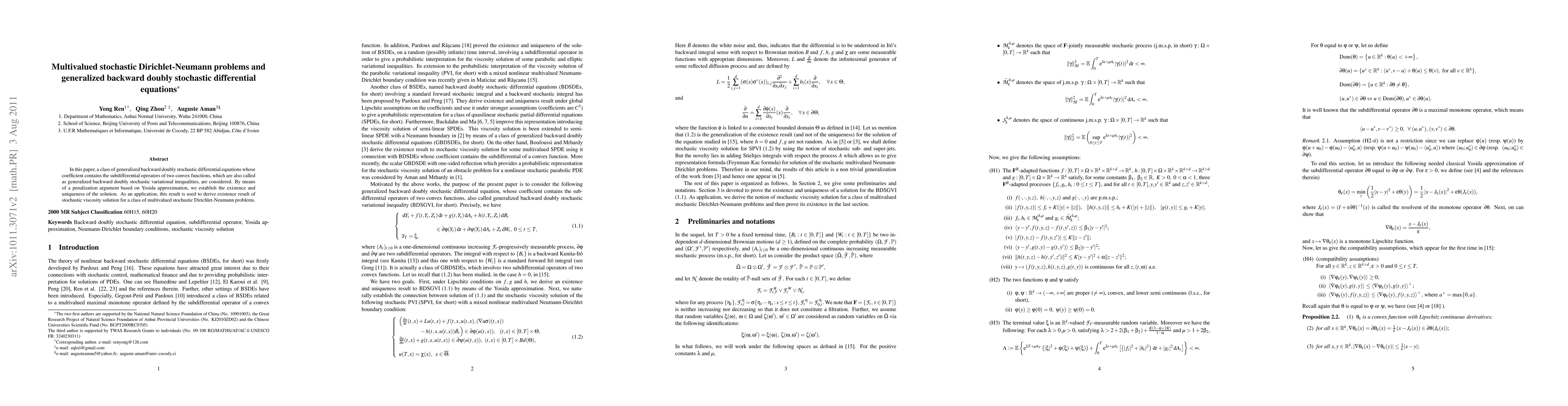 This paper establishes the existence and uniqueness of solutions for generalized backward doubly stochastic differential equations using Yosida approximation and penalization techniques. It then applies these results to derive existence of stochastic viscosity solutions for multivalued stochastic Dirichlet-Neumann problems.