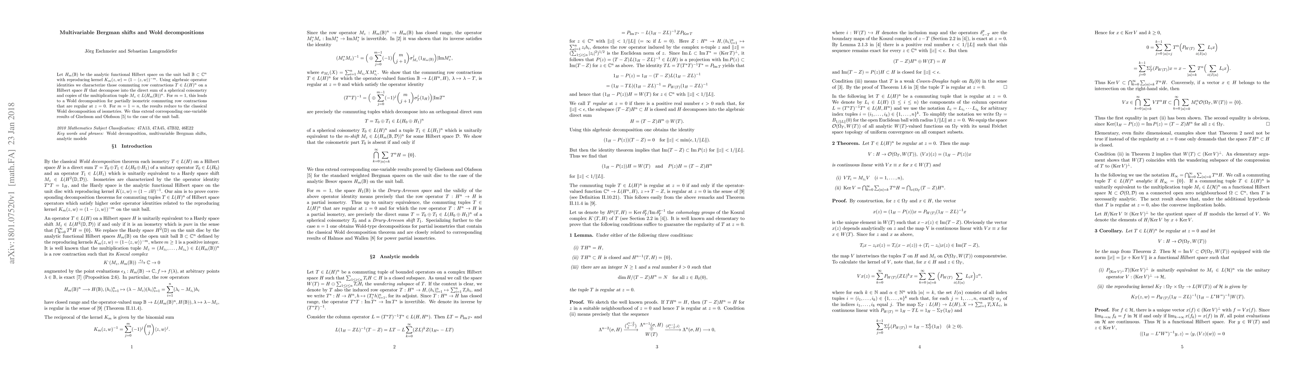 Let $H_m(\mathbb B)$ be the analytic functional Hilbert space on the unit ball $\mathbb B \subset \mathbb C^n$ with reproducing kernel $K_m(z,w) = (1 - \langle z,w \rangle)^{-m}$. Using algebraic operator identities we characterize those commuting row contractions $T \in L(H)^n$ on a Hilbert space $H$ that decompose into the direct sum of a spherical coisometry and copies of the multiplication tuple $M_z \in L(H_m(\mathbb B))^n$. For $m=1$, this leads to a Wold decomposition for partially isometric commuting row contractions that are regular at $z = 0$. For $m = 1 = n$, the results reduce to the classical Wold decomposition of isometries. We thus extend corresponding one-variable results of Giselsson and Olofsson to the case of the unit ball.