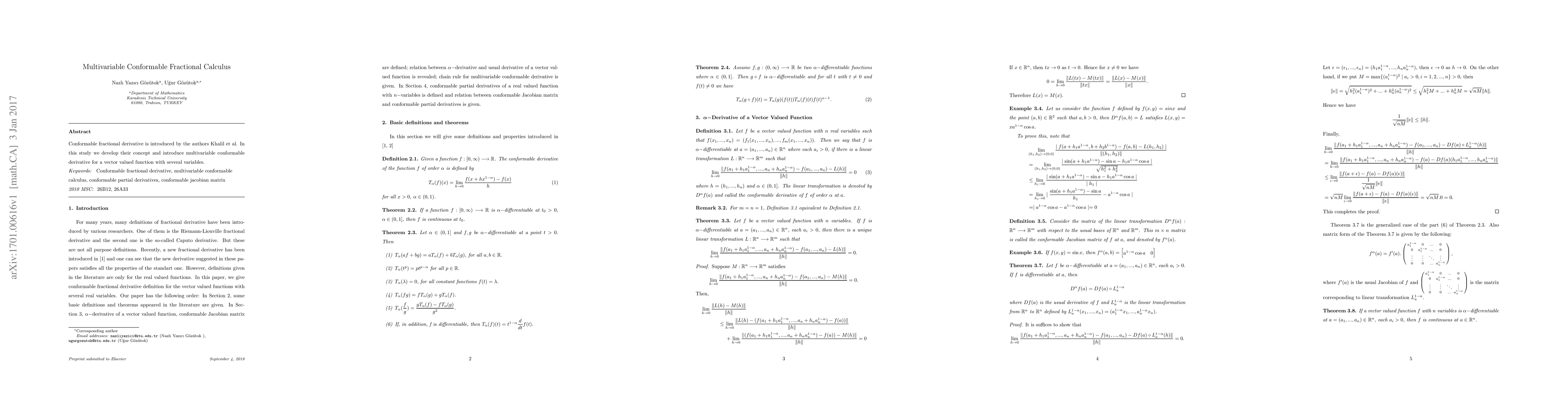 Summary: This paper extends the concept of conformable fractional derivatives to multivariable scenarios, introducing a new multivariable conformable fractional derivative for vector-valued functions with multiple variables.