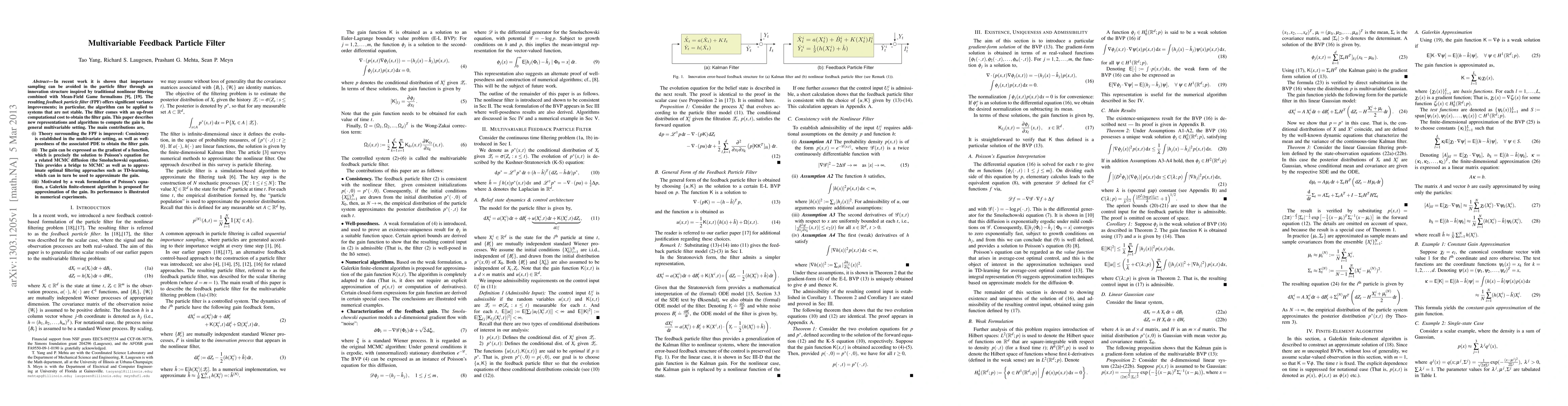 In recent work it is shown that importance sampling can be avoided in the particle filter through an innovation structure inspired by traditional nonlinear filtering combined with Mean-Field Game formalisms. The resulting feedback particle filter (FPF) offers significant variance improvements; in particular, the algorithm can be applied to systems that are not stable. The filter comes with an up-front computational cost to obtain the filter gain. This paper describes new representations and algorithms to compute the gain in the general multivariable setting. The main contributions are, (i) Theory surrounding the FPF is improved: Consistency is established in the multivariate setting, as well as well-posedness of the associated PDE to obtain the filter gain. (ii) The gain can be expressed as the gradient of a function, which is precisely the solution to Poisson's equation for a related MCMC diffusion (the Smoluchowski equation). This provides a bridge to MCMC as well as to approximate optimal filtering approaches such as TD-learning, which can in turn be used to approximate the gain. (iii) Motivated by a weak formulation of Poisson's equation, a Galerkin finite-element algorithm is proposed for approximation of the gain. Its performance is illustrated in numerical experiments.