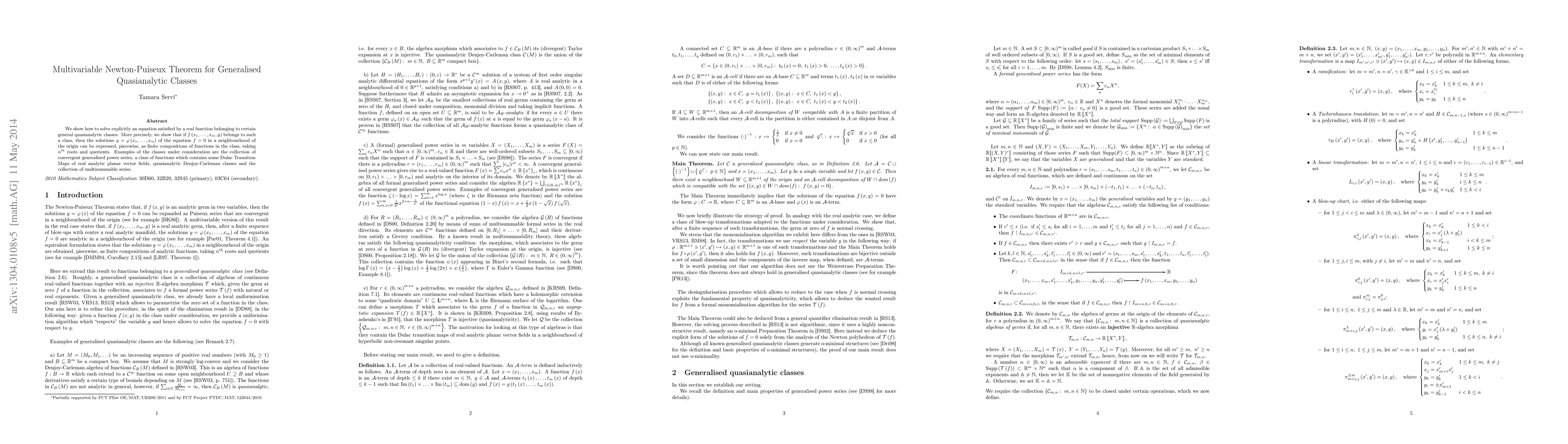 The paper presents a Multivariable Newton-Puiseux Theorem to solve equations for real functions in various quasianalytic classes, including generalised power series, Dulac Transition Maps, Denjoy-Carleman classes, and multisummable series. The method provides explicit solutions for these function classes.
