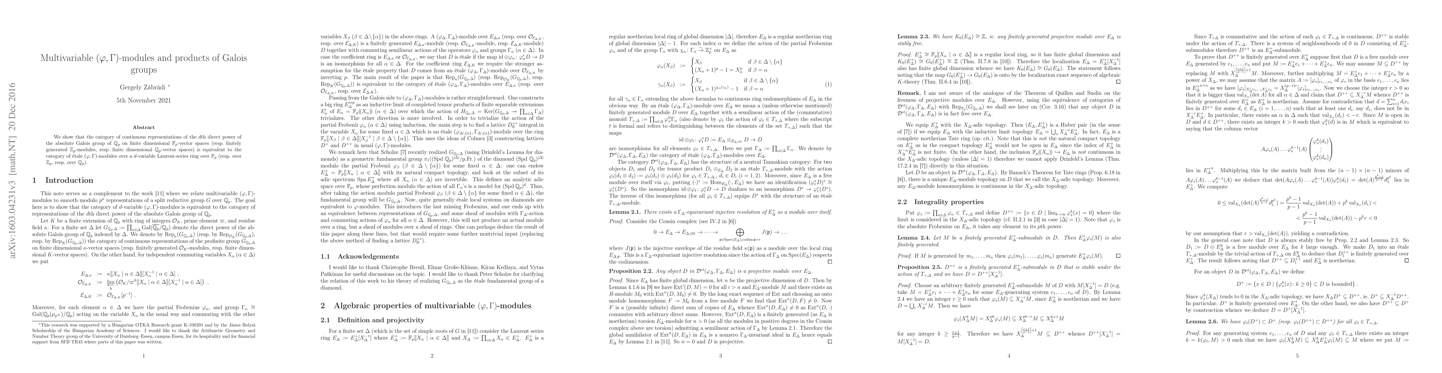 The paper establishes an equivalence between categories of representations of the absolute Galois group of $b Q_p$ and categories of certain types of $(oldsymbol{ ho}, oldsymbol{ abla})$-modules over $d$-variable Laurent-series rings over $b F_p$, $b Z_p$, or $b Q_p$. This equivalence provides a new perspective on the structure of Galois groups and their representations.