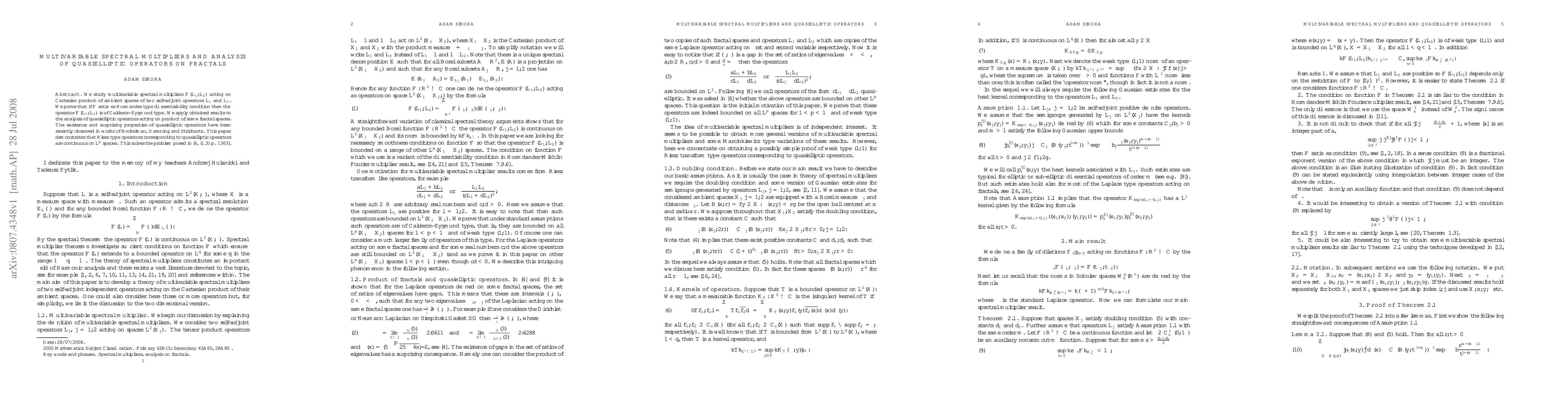 This paper investigates multivariable spectral multipliers $F(L_1,L_2)$ for self-adjoint operators $L_1$ and $L_2$, proving that $F$ satisfying H\"ormander's condition results in $F(L_1,L_2)$ being of Calder\'on-Zygmund type. It also applies these findings to quasielliptic operators on fractal spaces, showing that Riesz type operators corresponding to these are continuous on $L^p$ spaces.