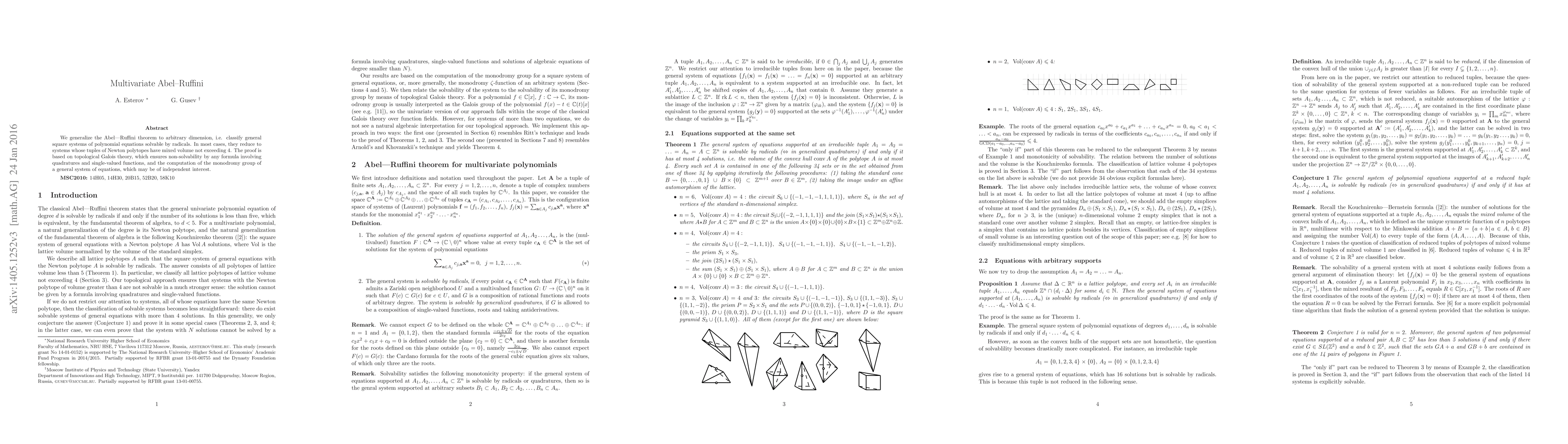 We classify general square systems of polynomial equations solvable in radicals. Expectedly, they are almost in a 1-to-1 correspondence with tuples of lattice polytopes of mixed volume not exceeding 4. The proof is based on the computation of the monodromy group for a general system of equations, which may be of independent interest.