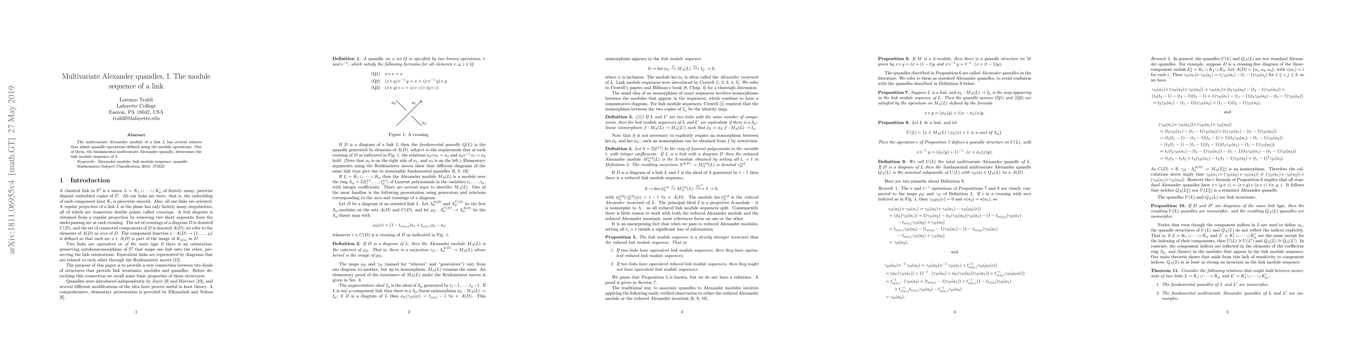 Summary: This paper explores the multivariate Alexander module of a link, focusing on its subsets that support quandle operations. It reveals that the fundamental multivariate Alexander quandle is crucial in determining the link module sequence.